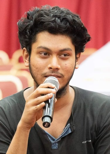 Mani, a filmmaker and writer, from Bangalore. He made his first short film called ‘Patches’ which dealt with the ordeals poor families go through to acquire finances for healthcare. His second film 'The Arrival of Factories', dealt with the effects of capitalism and urbanization when a factory is set up in a village.